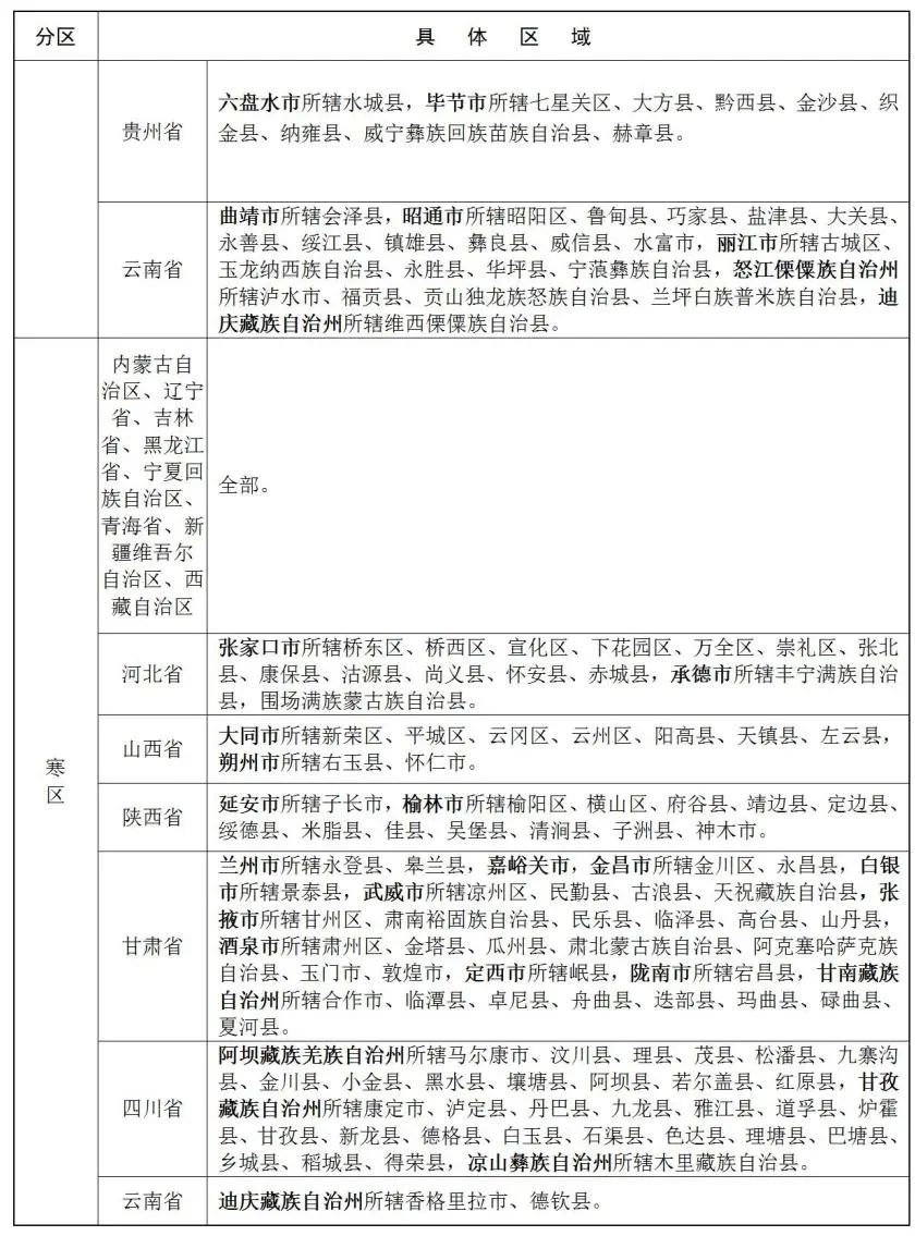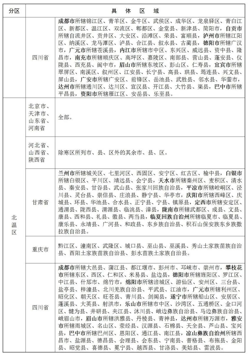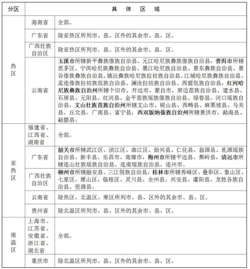 综合行政执法队伍统一着装气候区域划分表